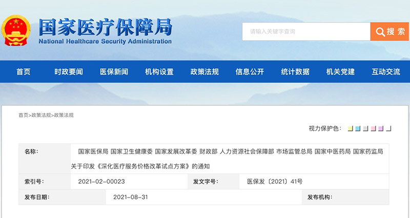8月31日, 國家醫(yī)保局等八部門聯(lián)合印發(fā) 《深化醫(yī)療服務價格改革試點方案》的通知(醫(yī)保發(fā)〔2021〕41號,以下簡稱《方案》)。