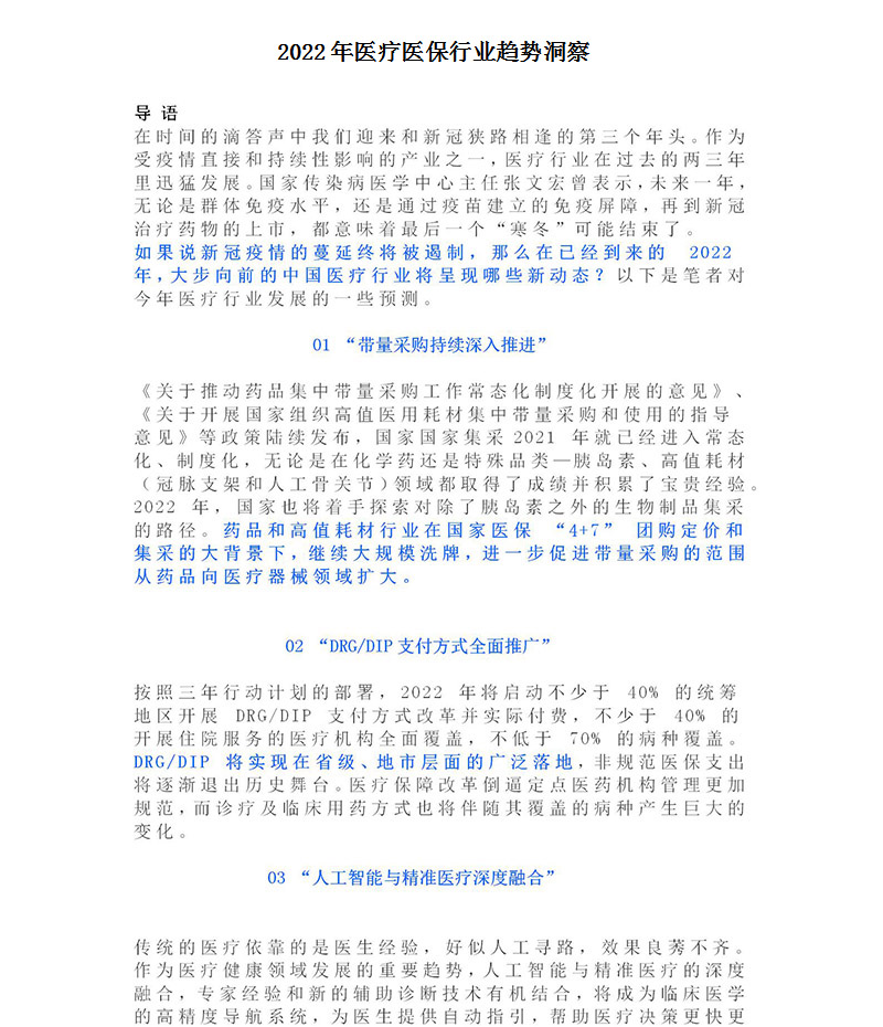 2022年醫(yī)療醫(yī)保行業(yè)趨勢洞察